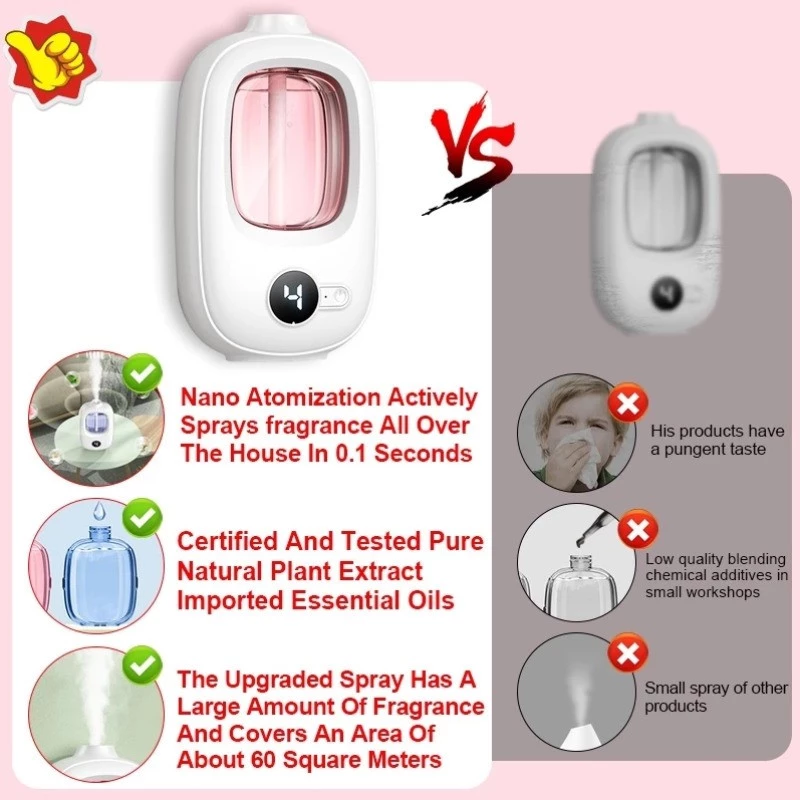 Fungsi: Aromaterapi, pengatur waktu, alat bantu tidur, alat penyemprot, senyap, sentuhan, mesin pengharum otomatis, diffuser, janji temu
